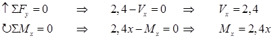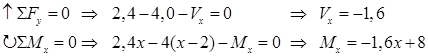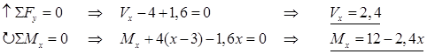 x = 5 Þ Mx = 8 – 1,6∙5 = 0kNm