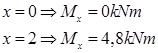 x = 2 Þ Mx = 8 – 3,2 = 4,8kNm