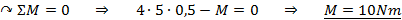 Vi begynner med å bestemme krefter og momenter som overføres ved innspenningen